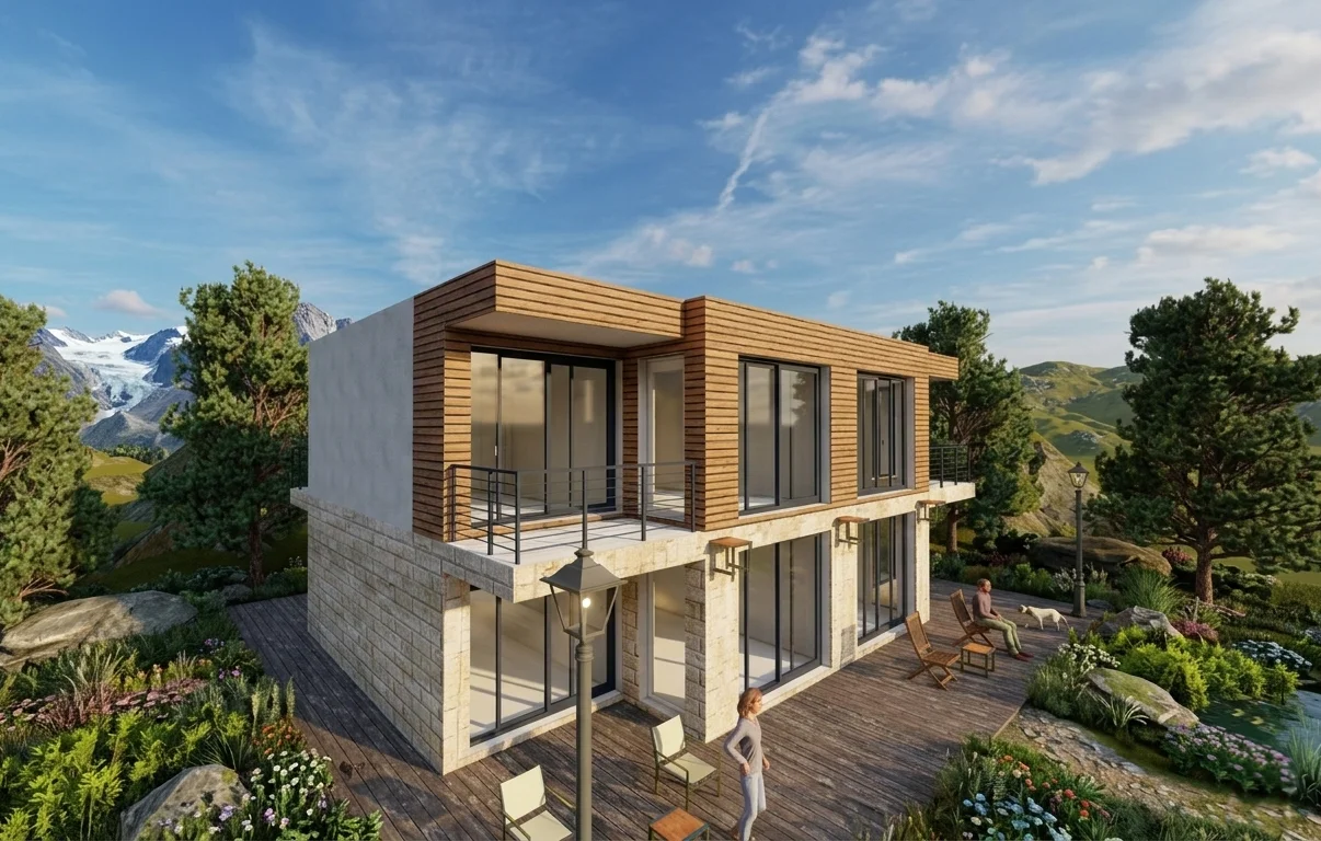 The complex includes two townhouses, each for two owners, with a total area of 300 m².